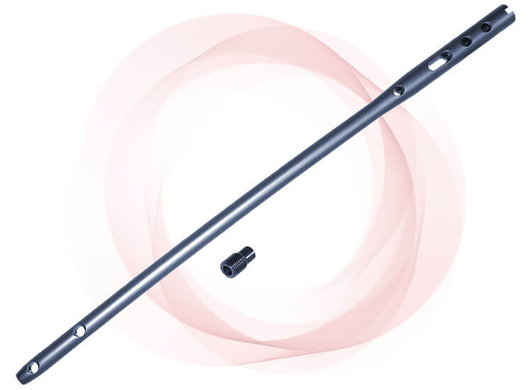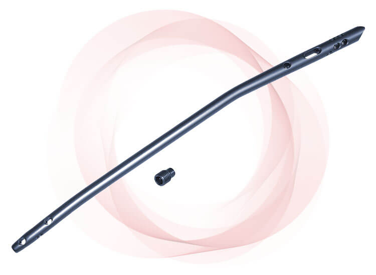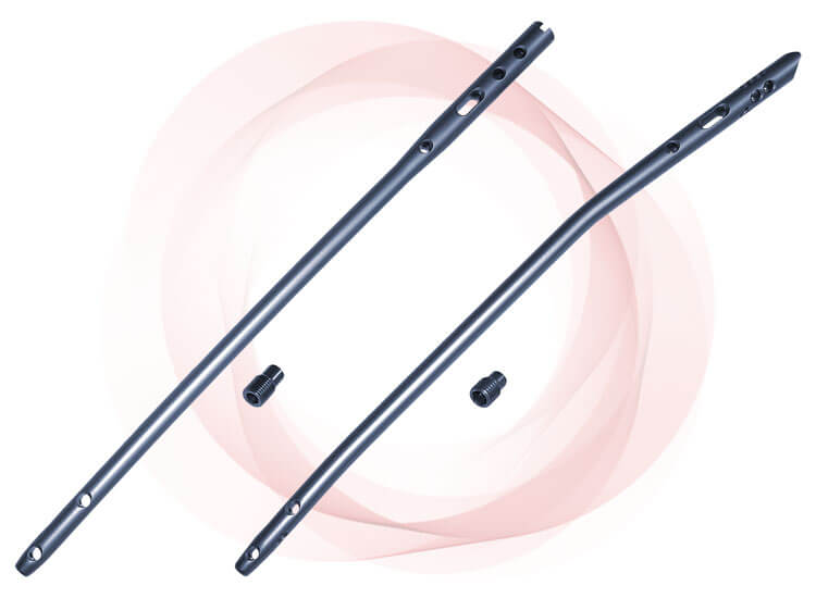 Hastes femurais canuladas TREU, podem ser utilizadas de forma anterógrada e retrógrada e boqueadas de forma metafisária.
